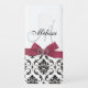 This girly, stylish, cute design is perfect for her. A monogrammed black and white damask pattern, a PRINTED pink bow and ribbon with two hearts with diamonds and a blank area where you can add your name and monogram initial in gorgeous script fonts. Design by Elke Clarke©