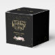 Personalised Black Gold Pink Floral Wedding Day Favour Box for all your special guests. Design features gold sparkles, the bride and groom name, the date, and an elegant pink floral arrangement.