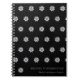 Here's your next business notebook. With a pattern of stars, you'll personalise this with your name and your job title. Suitable for men and women. In shades of grey on a black background.