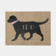 Personalised Monogrammed black lab retriever wearing preppy red striped popped up shirt and navy The Preppy Dog™ collar. Tan jute background. Add your own monogram. Preppy gift idea for lab and dog lovers! The Preppy Dog™ © EMR Designs.