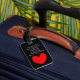 Absolutely cute black luggage tag with a red heart printed on it. Personalise your name and address and make it yours!