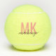 Modern personalised tennis balls with an elegant signature name and 2 initials monogram in a simple minimal bold sans-serif font and elegant trendy calligraphy cursive script name in coral pink and black. Any girl, teen or women's tennis player would love these black and grey modern monogrammed practice balls.