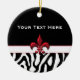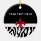 Personalise this Black Red Zebra Fleur de Lis ornament for any occasion or gift. The ornament features a red faux metal Fleur de Lis symbol on a black, red, and zebra pattern design.
