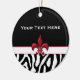Personalised Black Red Zebra Fleur de Lis Ceramic Tree Decoration