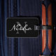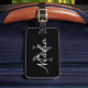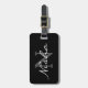 Cool customisable luggage tag design with bold black background and stylish grey white monogram. Modern elegant design.