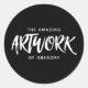 A cool black and white personalised sticker that says,"The Amazing Artwork of Gregory." Perfect for adding to the back of your artwork that your kids give away to people.Would be great for craft fairs. Customise the sticker with the name of your choice. Comes in a variety of colours. Designed for you by Blackberry Boulevard.
