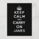 Personalised Black White Keep Calm and Carry On Postcard