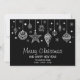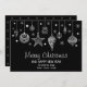 Share your festive joy with this black holiday card featuring white decorative baubles.