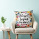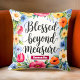 A colourful watercolor wreath of wildflowers surrounding the phrase "Blessed Beyond Measure" in beautiful, elegant bold calligraphy typography. Personalised with name.
