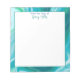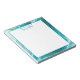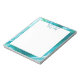 Personalised notepad with blue and teal marble fluid art border.
