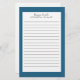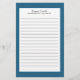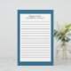 Personalised blue and white lined stationery. Text, font, font size, colour and placement are completely customisable.
