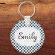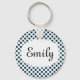 Cute personalised white keychain with navy blue polka dots. Add your name or initials / monogram to make it your own.