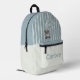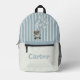 Personalised blue and white striped bear printed backpack