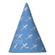 Artwork features an aeroplane on blue background along with customisable typography field, which currently reads "Pilot Paul Soaring High!" for name, party theme, or other personalisation. The perfect party hat for the pilot-to-be child's birthday!