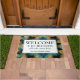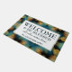 Personalised Blue Bokeh WELCOME Doormat WELCOME Metal Sign with the wording WELCOME & BE BLESSED ALL WHO ENTER HERE plus placeholder name. The background is a turquoise bokeh pattern. All text is CUSTOMIZABLE so you can amend the wording to suit your needs.