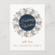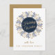 Elegant and modern christmas "Holiday Wishes" postcard design with navy blue and gold floral elements. Text can be easily replaced with your own.
