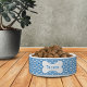 Pamper your precious pet with this personalised timeless blue gingham with paws patterned pet bowl! Personalise it with your dog's name in the bone.