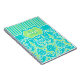 This monogrammed turquoise blue, green, and white stripes with damask notebook has template boxes for you to add your name, initials, monogram, or other text. If you need help customising this item, please email niteowlstudio@gmail.com for assistance.