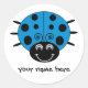 A cute blue cartoon ladybug on a round sticker. Customisable so you can add your name!