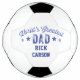 "World's Greatest Dad" with personalised name soccer ball in blue. Customise with your father's name.