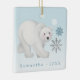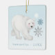 Commemorate you Christmas with this cute blue polar bear and snowflakes personalised ornament. This ornament is fully customisable! You can edit the text and add your own photo by clicking "personalise this template". This personalised purple polar bear ornament features a hand drawn polar bear by OhMyStarling and icy blue, white, and silver snowflakes. It has a place to add your name and the year! There is a background pattern of light icy blue, white, and silver glitter snowflakes. This personalised snowflake ornament is great for your newborn baby, baby's first Christmas, and for kids!