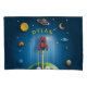 Add a name to this rocket ship pillowcase, featuring a rocket ship blasting through the clouds surrounded by the sun, moon, stars and planets.