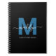 Personalised Elegant Modern Black and Blue Script Name Initial Monogram Spiral Notebook. This chic notebook is crafted with a sophisticated, stylish touch, featuring a flat blue initial on a sleek black background. A graceful white script name overlays the initial in elegant calligraphy, with the full first and last name printed below in a clean, modern font for a polished, personalised finish. Whether used for notes in the office, jotting down school assignments—ideal for middle school, high school, or college—or as a stylish sketchbook, this notebook makes an excellent, thoughtful gift for holidays, birthdays, back to school for teachers or students, or any special occasion. Blending elegance with functionality, it’s perfect for anyone who loves a refined, personal touch in their daily essentials.