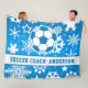 Personalised Blue Snowflakes Soccer Coach Name Fleece Blanket