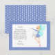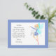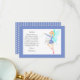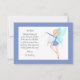 These cute little tooth fairy thank you cards add a little more magic as they grow and lose their teeth. The card has a fairy dressed in blue, carrying a tooth and waving her wand, there is a blue border, the back of the card has white stars and a template letter which can be changed to your own. All text font styles, size and colours can be changed by clicking on the customise further link after personalising.