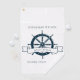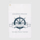 Chic custom boat captain or seaside golf towel for an ocean liner company featuring a navy blue boat steering wheel. This vintage nautical themed gift is perfect for a ship helmsman near the beach. Personalise with your name.