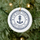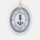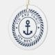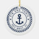 Create a unique boat keepsake with this custom photo ornament featuring your boat name and ship's registry in navy blue lettering on a nautical rope badge with an anchor illustration in the centre. Add a photo of your boat to the reverse side.