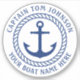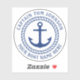 Sticker featuring an anchor inside a rope border. Customisable name and boat name around the circular border, or add other custom text. Customisable colour and font.