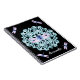 Gorgeous personalised black whimsical mandala dragonfly notebook. Features an ice blue mandala with four purple and blue watercolor dragonflies on the outsides of the mandala and one large dragonfly on top of the centre of the mandala. Black background. Personalised with your name in a modern script font.