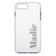 This design is simple and bold. This phone case features your name in bold large grey print with with a white background. Colours are fully customisable