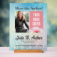 Create a memorable impression at your next author event with this customisable poster with a wooden stand, part of the Bubbly Blue Bokeh Book Bash Collection. Featuring a soft blue bokeh background, this poster offers spaces for your author photo and book cover, along with editable text for your name, genre, book title, and website. The modern typography and pink floral accent give the display a professional and inviting look, perfect for "Meet the Author" events, book signings, and launch parties.