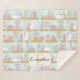 Personalised Bookish Cat Gift Green Pastel Name Sherpa Blanket