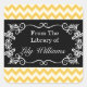 Personalise your books with the customisable bookplates with a trendy yellow chevron stripes pattern border and white floral frame on a black background.