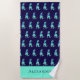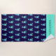 Personalised boy name dinosaur pattern navy blue aqua green Beach Towel. Custom colourful funky psychedelic Jurassic T-Rex Dino pattern beach Towel with Monogram name. Unique Original Jurassic dinosaur Art by artist Catherine Sweetman