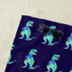 Make a bold splash with this personalised dinosaur navy blue background with aqua green beach towel featuring colourful watercolor hand-painted Jurassic dino T-Rex! Designed with a fun-loving boy in mind, this towel showcases a watercolor Tyrannosaurus rex pattern in vibrant shades of blue green teal aqua purple and yellow all set against a cool modern navy blue background.