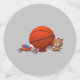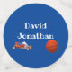 Personalised Boy Toys design coordinates with the adorable "Boy Toys" themed baby shower invitations, decorations and nursery accessories. Child's name is displayed in white lettering against a bright blue background. Images of a baseball and basketball are displayed on one side.