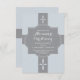 This is a stylish and elegant Christening/Baptism invitation with a light blue and grey colour scheme and a quatrefoil pattern. The text is customisable.