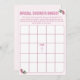 It's the ever-popular Bridal Shower Bingo game, but better! This game card is personalised in honour of the Bride and Groom. A pale-pink colour serves as background to a darker pink text. Game itself is featured in white. The "Free" space features the initials of Bride and Groom elegantly linked together. Game is customisable to best suit your needs.
