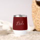 Personalised burgundy, script, bride, wedding wine tumbler. Modern, elegant, trendy wine tumbler.