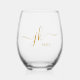 Personalised Bride Name Gold Script Monogram Stemless Wine Glass