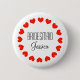 Personalised bridesmaid buttons with red hearts and elegant font. Great for bachelorette party, bridal shower and beautiful weddings. Classy round design. Posh and cute!