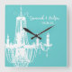 Personalised Bright Aqua Chandelier or Any Colour Square Wall Clock