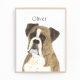 I am in love with this beautifully detailed watercolor illustration of a brindle and white boxer dog! Personalise these art prints with your name or monogram to compliment your decor! Change fonts by selecting the "edit using design tool" option at personalisation. Shop the rest of my collection for the sweetest housewarming, bridal shower, teacher, mother-in-law, husband, boyfriend, secret santa, or tough-to-shop-for gifts! To see more work and learn about this artist, visit her at: www.theprintsprincess.com and www.instagram.com/theprintsprincess