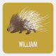 Make your mark and create your own custom porcupine sticker featuring an illustration of a brown porcupine against a mustard gold background with your own name or other message in white lettering below.