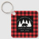 Personalised Buffalo Plaid Bear Forest Cabin Key Ring