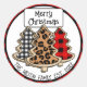 Personalised with name and established date Black and white Buffalo plaid, red and black gingham, leopard print Christmas Trees stickers for your Christmas party.